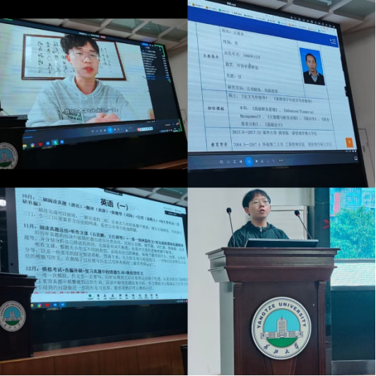 会议伊始,院团委书记黄何为会议开场致辞,介绍到场嘉宾,并对当前的考研形势及考研对员工的重要性进行了深入的分析,强调考研不仅能促进员工自身发展,帮助获得更丰富的知识、开阔眼界,还能满足社会对新型人才的需要。紧接着,朱建伟老师针对备考策略进行了分享,为广大备考员工提供了行动指南。随后,成功保送兰州大学研究生20级的李家胜学长和成功考取西南财经大学研究生的20级学姐梁宇欣针对同学们学科基础弱的问题,以vlog的方式分享了政治与英语的备考复习经验。同为20级的学长汪兴宇以考研成绩第一名的位次考研到本院就对于同学们犯难的笔试面试问题给出了建议,以自身的经历为背景通过现场解说从多个角度分享了自己是如何在激烈的竞争中脱颖而出的经验,鼓励在场的同学们坚定信念,勇敢面对挑战。同时汪春花老师也为同学们分享了高等代数方面的备考战略。毫无疑问,这次的经验分享解决了许多同学们心中的难题,也为之后的备考做了更充分的准备。