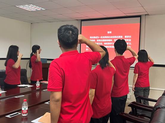 活动伊始,全体起立,奏唱国歌,启动仪式拉开帷幕。首先暑期社会实践队队长欧登波代表志愿者发言,他表示,暑期社会实践项目为员工提供了广阔的舞台,同学们定会履行誓言,全力以赴开展好今年的社会实践活动。接着公司党委副书记袁海山结合自身经历,向志愿者提出了建议及要求,他表示,在社会实践的过程中,要确保活动安全,不仅确保自身安全,也要确保支教员工的安全。随后公司党委书记李喜成为本次暑期社会实践授旗,并对实践团队成员提出了三点希望:一是希望团队时刻紧绷安全神经,确保暑期社会实践活动的顺利进行;二是希望成员珍惜本次机遇,全面提升自身综合素质并高质量的完成支教工作;三是希望员工充分发扬志愿者精神,争当时代先锋,在社会实践和志愿服务中践行“请党放心 强国有我”的铮铮誓言,同时努力“让青春在全面建设社会主义现代化国家的火热实践中绽放绚丽之花”。授旗后,志愿队代表于佳琳带领全体志愿队队员进行宣誓,志愿者们纷纷表示,在接下来的实践活动中将深化思想引领,把言语落到实处,磨炼意志、施展才华、开拓创新,在实践中成长,在奉献中成才。最后暑期社会实践团队成员签署安全责任书及支教协议并到楼下进行合影留念。本次启动仪式圆满结束。