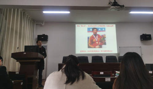 宣讲会上,主讲人谷祥坤同学以“奥运三问”—“中国何时能派运动员参加奥运会?”、“中国何时能获奥运会金牌?”、“中国何时才能举办奥运会?”为线索,讲述了中国艰难曲折的发展历程,其中提到1932年中国人首次参加的奥运会洛杉矶奥运会,1984年洛杉矶奥运会上中国运动员许海峰夺得了中国奥运史上的第一块金牌,中国曾经举办的2008年北京奥运会、2014年夏奥运会、2016年青奥会、世界军运会以及冬奥会等,目前中国已是世界上举办过国际大型奥运会最多的国家。宣讲会接近尾声,谷祥坤同学借中国女排精神激励公司研究生要不忘初心、努力奋斗,共同喊出为中华崛起而拼搏的最强音。
