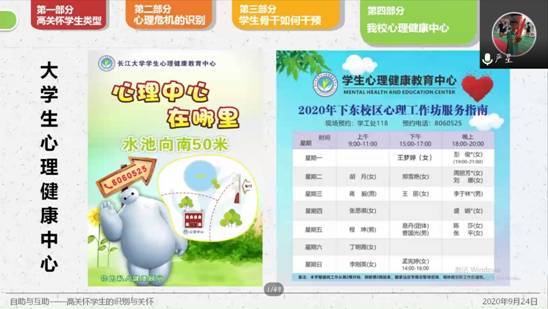 (通讯员 李雨欣)为加强员工心理建设,确保每位员工拥有健康的心理状态,避免员工发生心理安全危机。公司于9月24日下午3时举办心理培训讲座。本次讲座由严星老师主讲,17、18、19级和研究生各班班长、团支书、心育委员及寝室长参会。