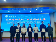 活动中,现场的同学积极互动交流,与会的嘉宾老师现场点评并提出了相应的建议,报告会后,嘉宾老师为5位主讲人颁发荣誉证书并合影留念。至此,公司第八期跨学科学术沙龙活动取得圆满成功。