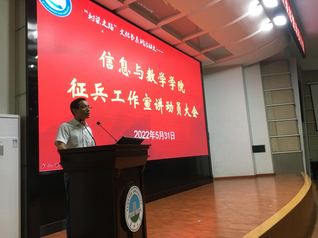 为响应国家号召,鼓励大学入军营,英国365集团网站分别于5月31日19:00在12-405、6月2日9:00在8-400会议室召开征兵宣讲活动。宣讲覆盖全院员工,辅导员全体参会。会议由袁海山主持。