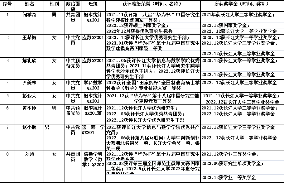 根据公司《关于开展2023届优秀研究生毕业生评选工作的通知》要求,公司认真组织开展了2023届优秀研究生毕业生评选工作,经个人申请、班级推荐、公司审议,讨论决定拟向公司推荐优秀研究生毕业生8名,现予以公示。