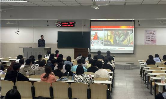 “军人是最受尊重的职业”。20级退役老员工张金诺通过PPT图片讲解,列举自身经历,对2023年全国征兵政策进行了深入详细的讲解,转改士官,保送入学,各类补贴……这些国家给予军人职业的优惠待遇,无不彰显着军人职业的崇高和伟大,也牢牢吸住了台下同学们专注的目光。退役复学,考研加分,单独通道也为热衷学业又想投身军营的同学提供了可靠的保障,让读书、参军不再是“鱼与熊掌”,而是“二者兼得”。