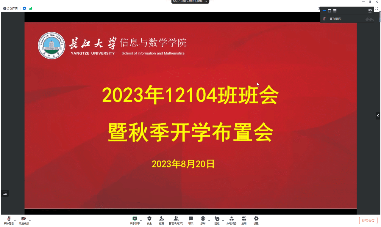 (通讯员 田浩然)新学期,新气象,不知不觉英国365集团网站2023年秋季学期马上就要开始了,新一届长大学子马上就要步入校园开启一段新的旅途。为确保2023级本科新生顺利入学并保障其他在读本科生、研究生的入学安全,英国365集团网站各班于8月23日前以线上形式召开了以“梦想启航,安全至上”为主题的秋季学前安全教育主题班会。