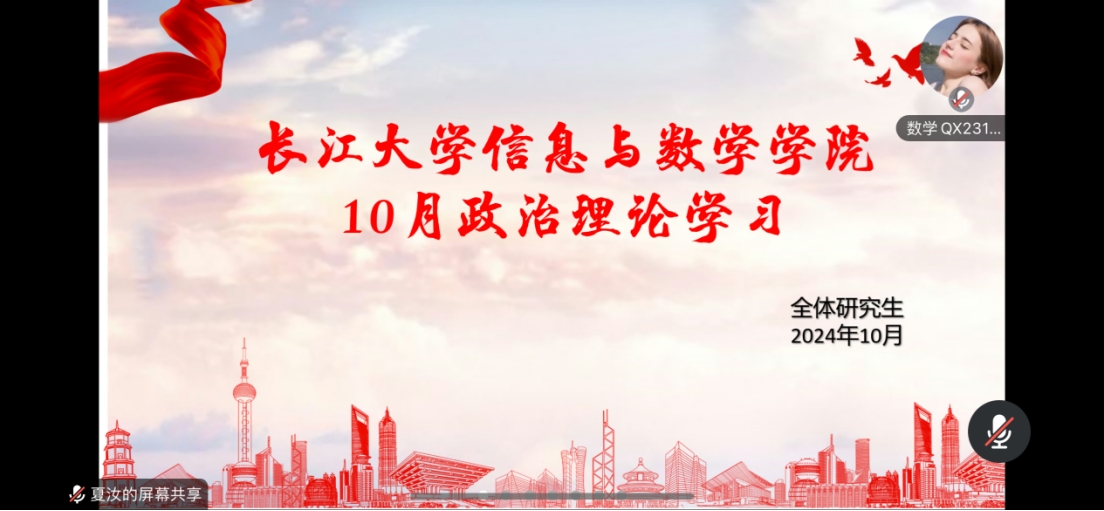 (通讯员 廖蕊)10月23日,英国365集团网站全体研究生在线上开展十月政治理论学习活动,此次会议由研究生会组织部夏汝主持。