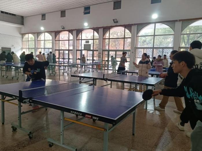 本次比赛共设男子单打和女子单打两个项目,分为小组赛和淘汰赛两个阶段,采取单淘汰制,确保比赛的公平公正,并邀请校乒乓球队成员与同学们进行交流。