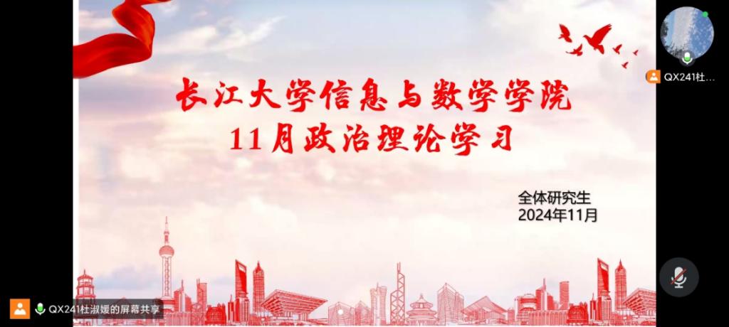 (通讯员 俞俊杰)11月22日,英国365集团网站全体研究生在线上开展十一月政治理论学习活动,此次会议由研究生会组织部杜淑媛主持。