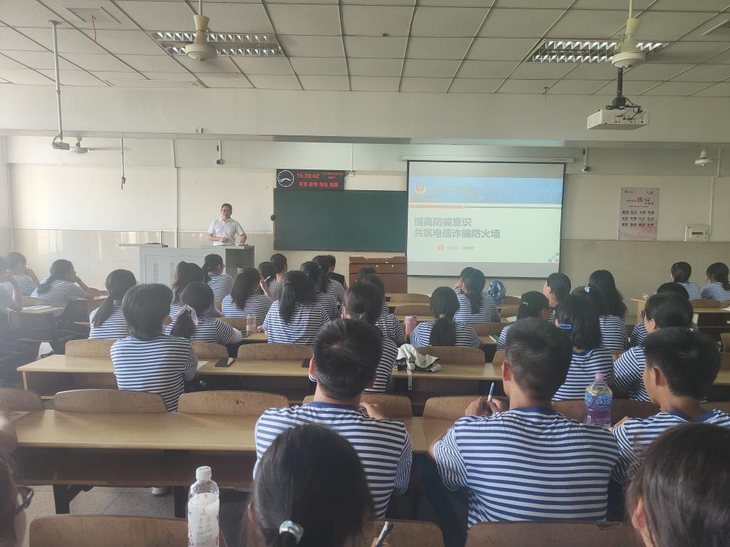 大会第二阶段,为了增强本科新生对电信诈骗的防范意识,吴老师进行了防范电信诈骗专题讲座,深入剖析什么是电信诈骗、电信诈骗的类别、常见的诈骗套路、典型案例、以及如何提高防诈骗意识等7个方面向2023级本科新生敲响防电诈的警钟,提醒大家保持高度警惕,远离各种陷阱,加强自我防范意识。