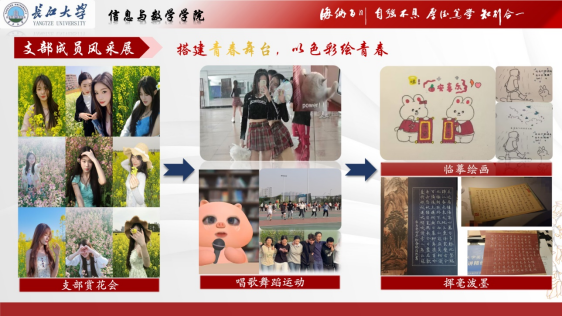 数学12202支部注重文化建设,营造积极向上的氛围。寝室文化丰富多彩,有劳动寝室、学习寝室、团结寝室等多种类型,促进成员间的交流与互助。积极参与公司的各项文化活动,如树梁文化节、运动会、才艺表演等,在支部赏花会等活动中,成员们展示才艺,增进感情,增强了支部的凝聚力。