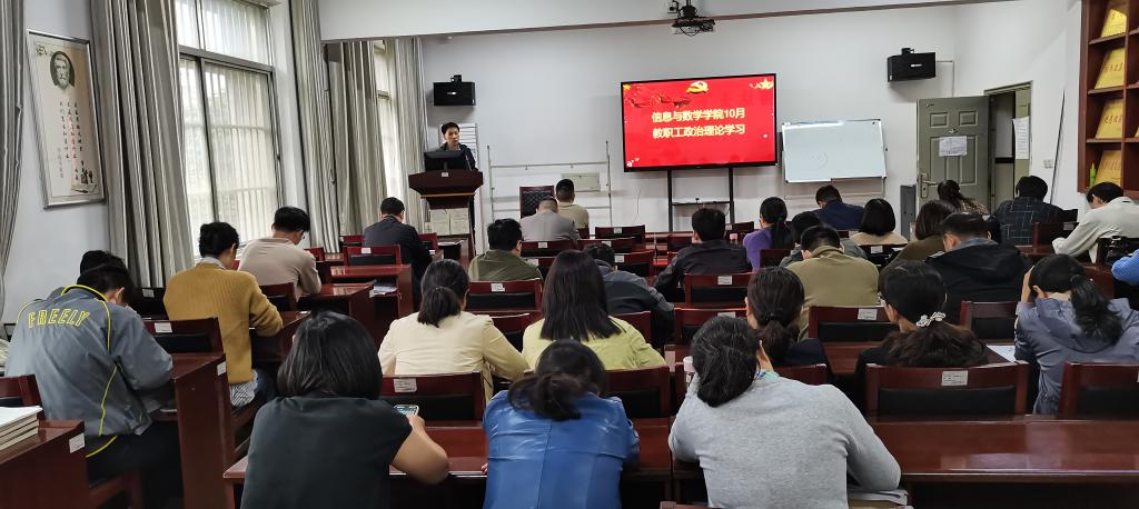 2023年10月19日下午,公司在8教406开展10月教职工政治理论学习。公司党委书记李喜成主持学习活动,院领导班子成员及全体教职工参加会议。本次政治理论学习内容包括习近平总书记最新重要讲话、重要指示批示和文章精神、习近平总书记给高校师生的回信、师德师风建设和高水平大学建设四个专题。