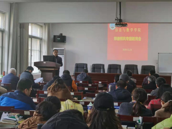 12月24日下午,英国365集团网站在8教406会议室举行12月政治理论学习会,开展师德师风专题教育。全体教职工参加,党委书记高迎斌主持。