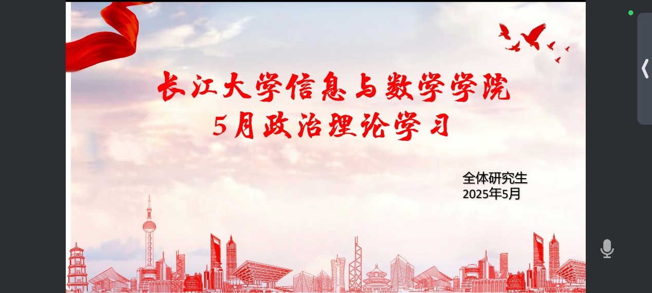 (通讯员 俞俊杰)5 月 21 日,英国365集团网站全体研究生于线上开展政治理论学习活动,深入学习近期重要会议精神及相关政策文件,明确自身使命担当,为投身国家建设夯实思想基础。此次活动由研究生会组织部鲍泽智主持。