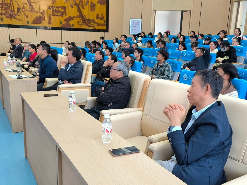 随后,喻平教授介绍在教学设计中如何挖掘数学文化元素,如何将数学文化元素融入教学中?喻教授通过丰富的案例来强调教师在教学设计时要思考的三个问题:为什么要研究这个问题?数学家是怎么研究这个问题的?这个问题有什么价值和意义?喻教授的讲座层层递进,深入浅出,为数学授课方式的创新提供了新思路。喻教授还将图论中的连通度等参数引入到知识网络体系的评价和解析中,让与会师生顿觉耳目一新,其独到的见解也赢得了在场师生的阵阵掌声。