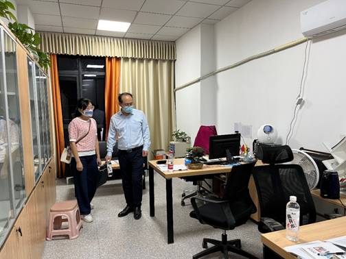 走访完员工宿舍,在得知公司的辅导员办公室在员工宿舍楼,江常委专程到辅导员办室进行慰问,查看老师的办公条件,了解公司的员工工作情况,亲切询问工作上有没有什么困难需要解决。
