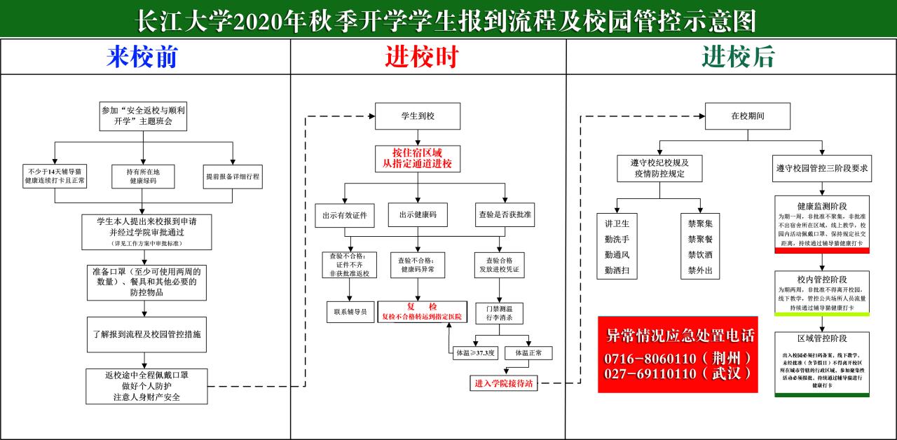 (1)进入校区大门复检异常者按工作人员指引进入转运区,由专车转入指定医院(荆州市胸科医院)检查;