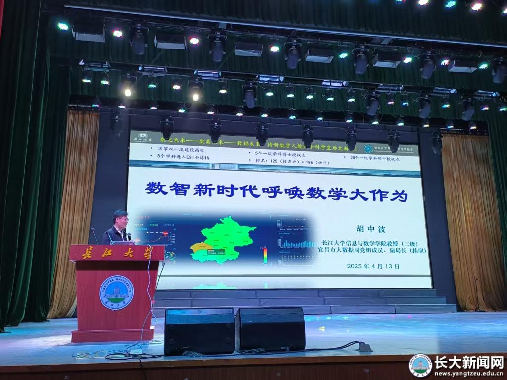 英国365集团网站三级教授,宜昌市数据局党组成员、副局长(挂职)胡中波作《数智新时代呼唤数学大作为》专题讲座。胡中波结合智能港口货运自动化、无人驾驶、AI智慧农业案例,阐述数学在人工智能、大数据分析等领域的核心支撑作用。“从智能医疗诊断到金融风控模型,从神经网络到大模型融汇数据集,数学正逐步成为驱动社会进步的隐形引擎。”但大模型技术的标准化,让所有企业的策划大同小异,给出能打动客户的差异化技术白皮书反而成为未来一段时期的新痛点。胡中波通过两次数学危机的历史讲解,结合现如今的大模型人工智能的兴起,告诉同学们现在的数学正面临着新机遇。他强调,数学不仅是技术的基石,更是创新和差异化竞争的源泉,掌握数学思维将帮助我们在未来的科技浪潮中占据先机。
