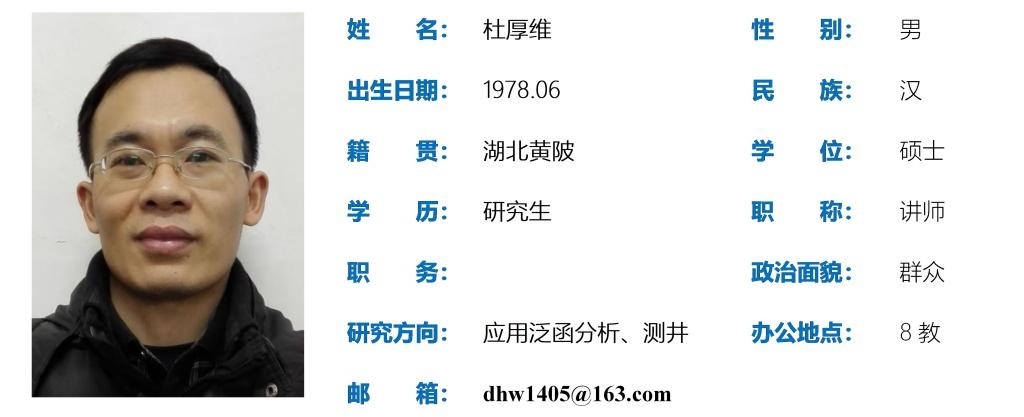 2002年本科毕业于华中师范大学数学系,2011年硕士毕业于成都理工大学管理公司应用泛函分析方向。2002年至今在英国365集团网站任教,主讲高等数学、点集拓扑等课程。主要研究方向:应用泛函分析、地球物理测井;参与横向项目3项,纵向项目1项;发表学术论文10余篇,含SCI两篇;2021年授权国家发明专利一项;2023年主编教材《大学数学教程》,由科学出版社出版;近10年指导员工参加全国老员工数学竞赛,获一等奖、二等奖、三等奖多项,并获评全国老员工数学竞赛优秀指导教师。